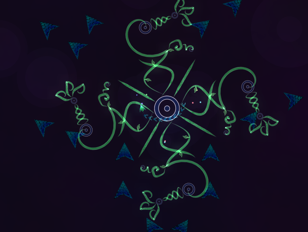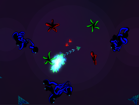 The original idea was that of a top-down evolving shooter that relied heavily on procedural content. The player started off as a small ship that would grow with each enemy that was defeated. The would also be enemies that grew the same way the player did, so you might see a ship that ran away earlier come back a lot stronger than when you saw it. All ship growth was based on L-systems, which are strict rule-based systems. Subsequent generations of enemies would be based off of previous generations by using genetics. The enemies chosen through a fitness function would have their parts and weapons combined to form new enemies. Most of the first semester was spent building the genetics, weapons, L-systems, and AI for this idea.